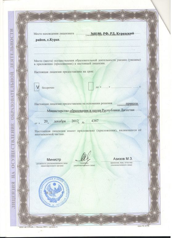 Учредитель: Управление Образования Курахского Районного Муниципального Образования. Работаем по основной общеобразовальной прогграмме в соответствии с государственными образовательными стандартами требованиями 368180 РД Курахский район с.Курах Контактный телефон учредителя: 89673922921 |