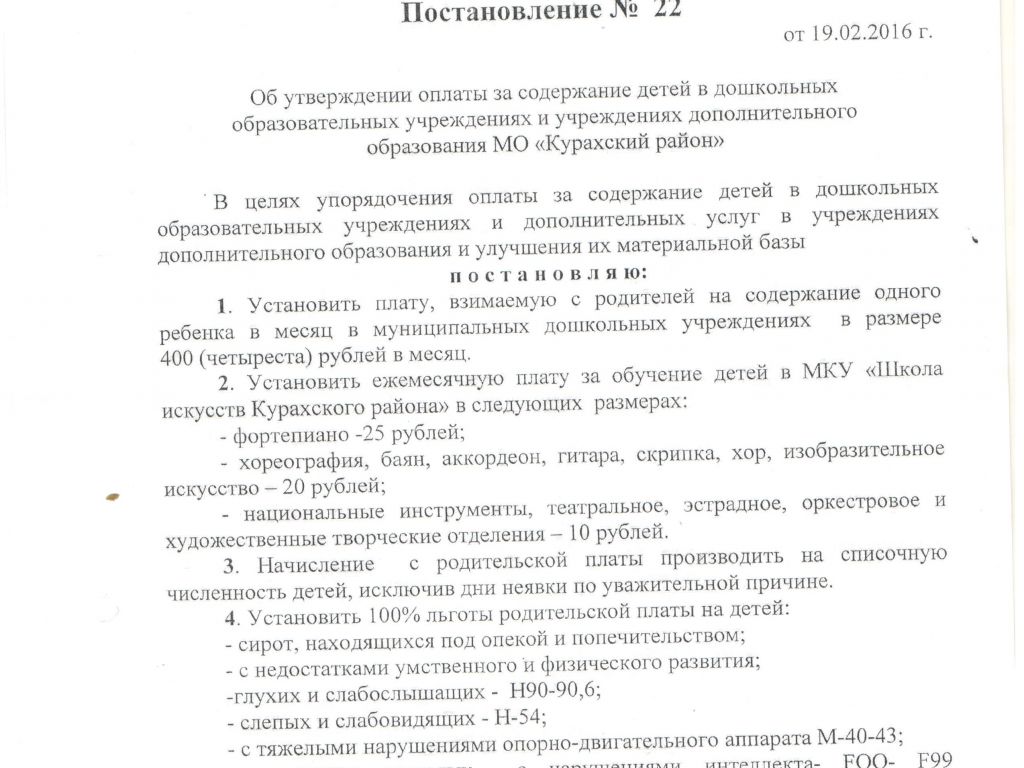 Документ об установлении размера платы, взимаемой с родителей (законных представителей)